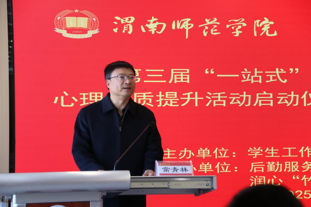 常青林指出,心理健康是学生成长成才的核心支撑,学校始终坚持以学生为中心,构建 “红色引领+心理支持”双驱动育人模式,完善“学校—学院—班级—宿舍”四级预警网络体系。他强调,本次“润心竹梦”活动以“红心筑韧性・青春绽芳华”为主题,既是对学校心理育人工作的深化,也是红色文化与心理健康教育深度融合的创新实践,希望各二级学院统筹推进活动开展,朋辈骨干勇担使命,全体同学主动参与,共同营造良好的校园心理氛围。随后,他宣布,第三届“一站式”学生社区“润心竹梦”心理素质提升活动正式启动,标志着为期一个月的系列活动正式拉开帷幕。