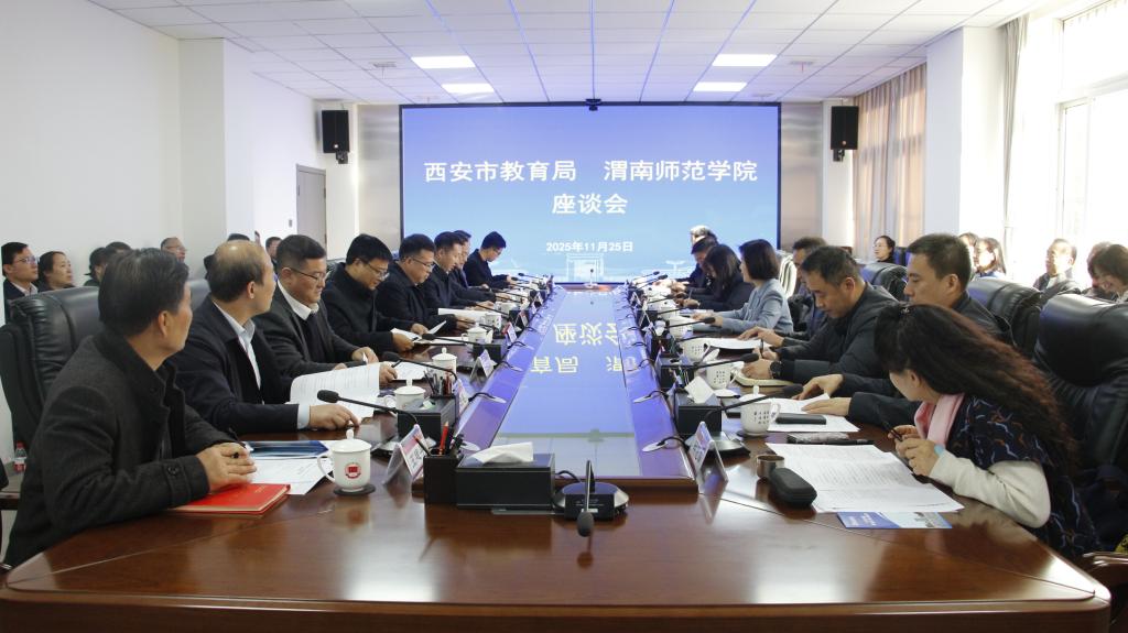 常青林就《渭南师范学院-西安市教育局合作框架协议》(征求意见稿)进行了介绍。与会人员共同观看了学校宣传片,并围绕深化合作、人才培养、学生就业成长等方面进行了深入交流。