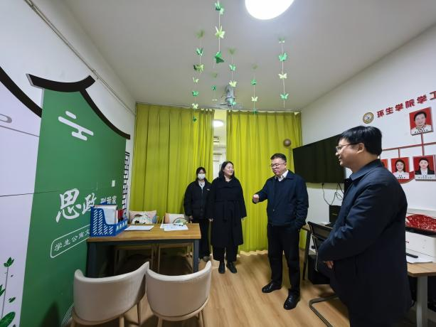 12月8日晚,党委书记郭强、党委副书记常青林深入学生社区走访辅导员工作站与学生宿舍。