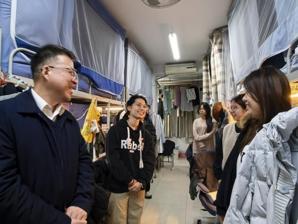 郭强深入学生宿舍了解同学们的学习和生活情况,殷切嘱托大家,要筑牢习惯之基,自觉养成良好学习习惯与生活习惯,平衡学业任务与生活节奏,以饱满状态投入日常学习生活。要提升专业素养,主动探索专业兴趣点,掌握核心知识与技能,在课程学习、实践实训中锤炼过硬本领。要全面发展,强化五育并举,不断提升个人综合素质与核心竞争力,在追求成长与突破中成就有价值、有意义的人生目标。
