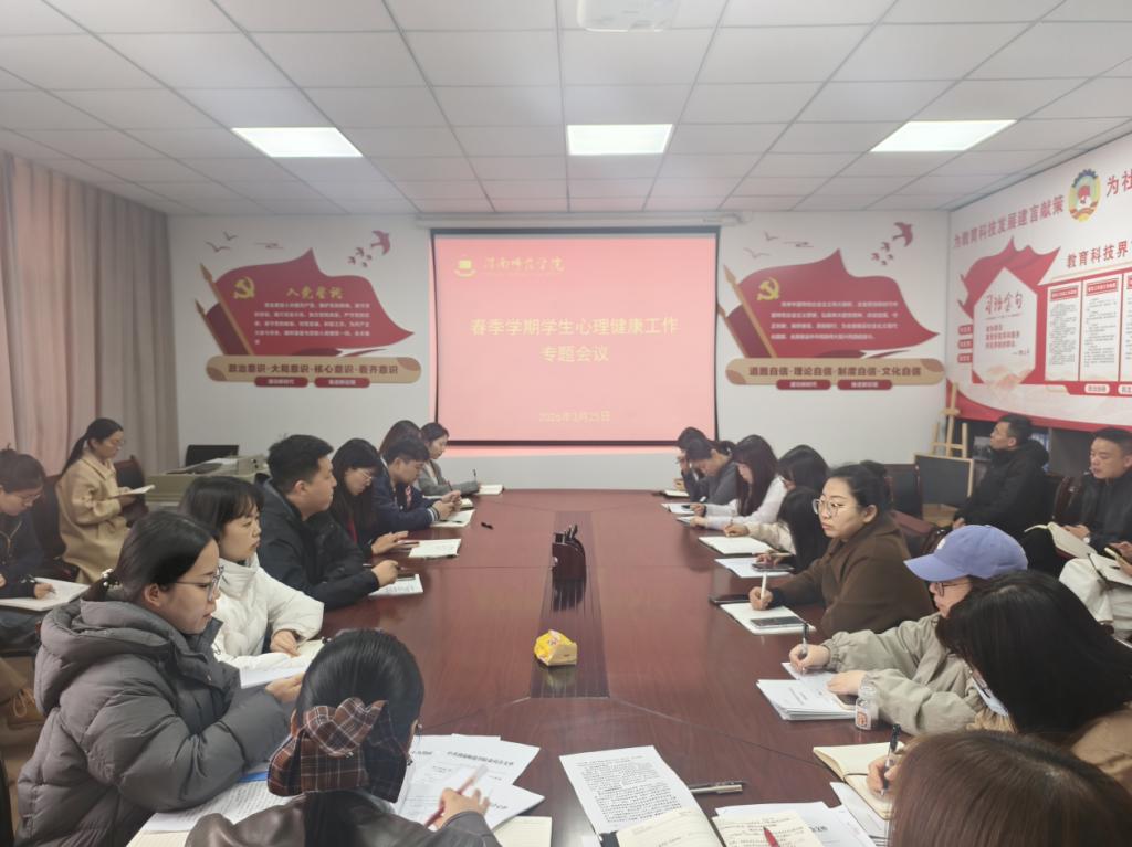 3月25日上午,学校召开春季学期学生心理健康工作专题会议。学生工作部副部长刘原、学生工作部相关人员、二级学院学生办公室主任、心理专干参加会议。