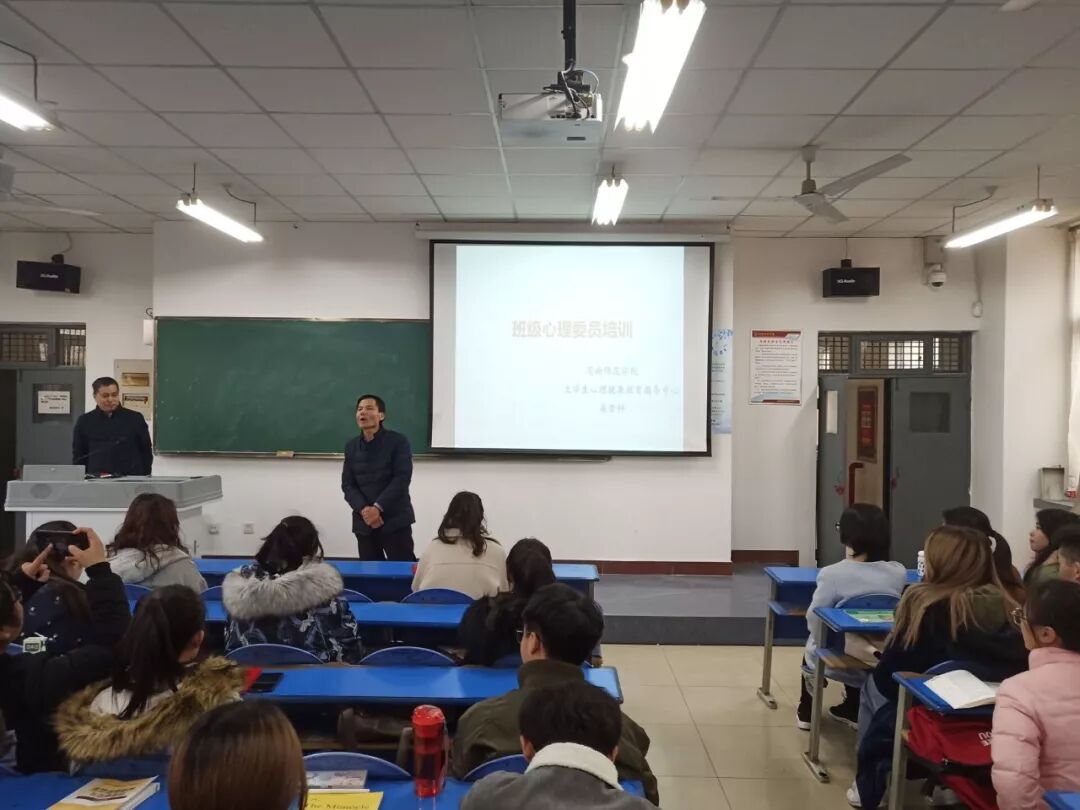 2018年12月18日下午,由教育科学学院承办的2018级新生心理委员培训暨渭南师范学院十佳心理委员颁奖典礼在知新楼2101教室成功举办。由大学生心理健康教育指导中心主办,大学生心理健康协会承办,本次会议由梁崇科教授主持。